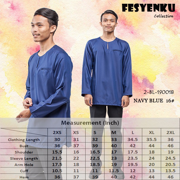 Ukuran baju melayu slim fit **material sakura@pearl skin **design moden **5 saiz (dewasa) s m l xl xxl **11 saiz (kanak2) 18 20 22 24 26 28 30 32 34.